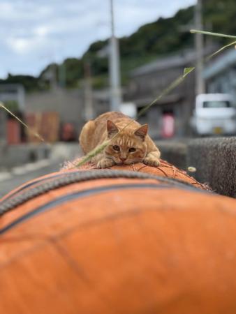 野島で出会った一匹の猫が、真っ直ぐにねこじゃらしを見つめる瞬間を捉えたこの作品。